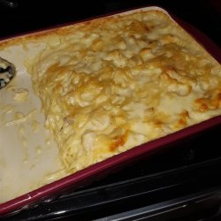 4Mix chicken broth mixture and turkey with spaghetti. Top with remaining cheese. Bake 1 hour in the preheated oven, until surface is lightly browned.