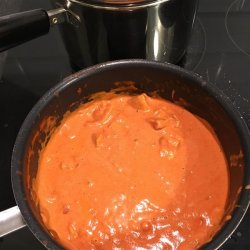 "A classic curry-stand recipe. This is not haute cuisine; this is the kind of nuclear-orange tikka masala that you crave when you stumble out of a pub at 2 a.m. I make vast quantities of the sauce at one time, and it freezes very well. I also added much more cayenne pepper than 1 teaspoon, but I give out the recipe like this for people who don't like heat."