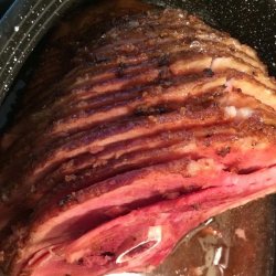 "I came up with the glaze for this ham using ingredients on hand and it's the best I've ever tasted. If you have any glaze left over, you can add it to the pan drippings with a little flour or cornstarch and make a nice sauce to accompany the meat. Use the bone and ham trimmings to make soup afterwards."