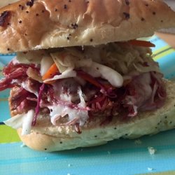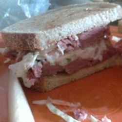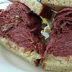 "This is an excellent recipe for party sandwiches. I always make 2 (and sometimes 3) briskets because it goes so fast. The meat should cook slowly for a minimum of 4 hours--cooking longer will just make it more tender. It sounds like a LOT of garlic, but no one has ever complained that it tasted too garlicky. Serve with brown mustard on rye or kaiser rolls. Can also add cole slaw to the sandwich for a uniquely delicious sandwich."