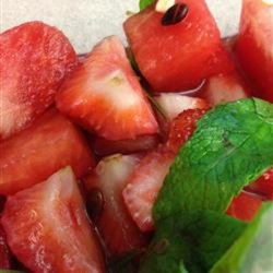 Mix watermelon and strawberries together in a bowl; add mint leaves and lavender flowers. Squeeze lemon over watermelon mixture and stir.