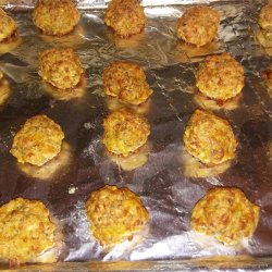 In a large bowl, combine sausage, biscuit baking mix and cheese. Form into walnut size balls and place on baking sheets.