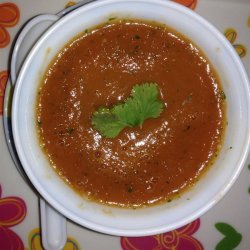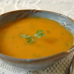 1Heat oil in a large pot over medium heat. Heat garlic, cilantro and chili paste. Saute onion until tender. Stir in carrots and potato; cook 5 minutes and then pour in vegetable broth.