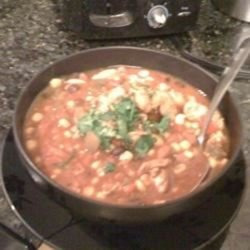 2Mix the kidney beans, black beans, and corn into the pot. Season with green pepper sauce. Reduce heat to low, and mix in remaining 2 cups water and tomato paste. Simmer, stirring occasionally 30 minutes, or until thickened. Top with cilantro to serve.