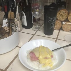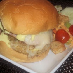 "This is a kid-friendly version of the original with all the taste and very little effort. Chicken, ham, and Swiss cheese are cooked until melty and served on toasted onion buns with a creamy honey mustard sauce. No one could possibly resist this sandwich, especially a Mom with only one pan to clean."