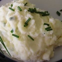 1Place potatoes in a large pot with enough water to come up 2 inches from the bottom. Bring to a boil, and cook for 20 to 25 minutes, until fork tender. Drain, and mash. Mix in the milk using a potato masher or an electric mixer until fluffy. Stir in the sour cream and chives, and season with salt and pepper.