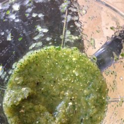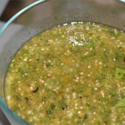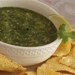 "Broiling the tomatillos gives this salsa a subtly smoky taste. If you are sensitive to spicy food, remove the seeds from the peppers. This salsa is perfect as both a dip for taco chips and to top enchiladas suizas."