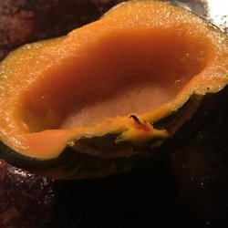 1In a microwave safe casserole dish pour enough water to reach 1 1/2 inches in depth. Place the squash halves cut side down in the water, and pierce the skin with a fork a few times. Microwave on high for 15 to 20 minutes. Drain.