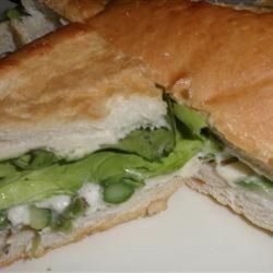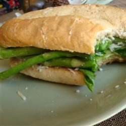 2Spread 1 side of 6 bread slices with 1/4 teaspoon butter and about 1 tablespoon mayonnaise each. Layer with asparagus, and sprinkle with Parmesan cheese. Place lettuce over the asparagus, season with pepper, and top with remaining 6 bread slices to form 6 sandwiches. Slice on a diagonal; this is a sandwich that exudes spring !