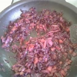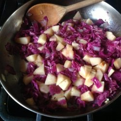 1Heat oil in a medium size saucepan. Stir in cabbage and onion; fry until wilted. Stir in apple and water, salt and pepper. Cover and simmer about 25 minutes.