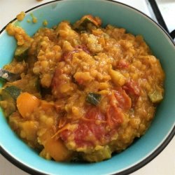 "This hardy, flavorful lentil stew is very nutritious and filling. Even my kids love it, which is surprising because they are picky. It is both vegan and gluten-free, so just about everyone can enjoy it. I like to spice mine up with garlic-chile sauce on the side. If you don't grow your own tomatoes, ripe ones can be hard to find. Ask your local produce grocer to set aside their damaged and overripe tomatoes for you when they restock and you can get them for a bargain."
