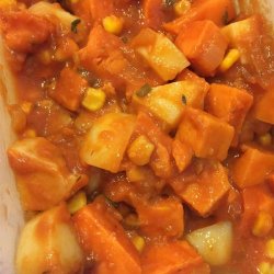1Preheat an oven to 425 degrees F (220 degrees C). Place the sweet potatoes into a 9x13 inch baking dish, drizzle with 1 tablespoon of corn oil, and season with salt and pepper. Stir to coat the sweet potatoes in oil.