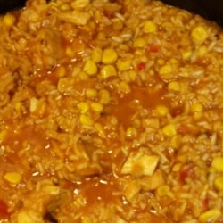 1Heat olive oil in a large skillet over medium-high heat. Season chicken with salt and pepper. Cook and stir chicken in hot oil until cooked through and juices run clear, 5 to 7 minutes. Add the broth and salsa and bring to a boil; turn off the heat and stir in the instant rice. Sprinkle Cheddar cheese over the mixture. Cover the skillet and let sit until the rice is tender, about 5 minutes.