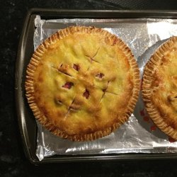 Apply yolk to top of pie, using a pastry brush. Sprinkle with sugar. Cut small holes in top to let steam escape.