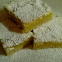 "This is a really easy recipe that my mom made before the lemon bar 'rage' was on! Thick-skinned lemons work the best. I suggest using real butter and eggs, I've tried using eggbeaters--nowhere near as good!"