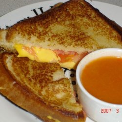 1Heat a small skillet to medium high heat. Spread a thin layer of butter on one side of both bread slices; place one slice bread, buttered-side-down, in hot skillet. Immediately place both cheese slices on bread and cover with second bread slice, butter-side-up. When first side is browned, turn over and brown other side. Remove from heat and let cool 2 to 3 minutes before serving.