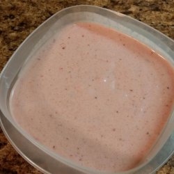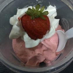 "A fast way to make delicious ice cream without compromising quality. Use any frozen fruit in place of the strawberries. This is a quick recipe to WOW company who drop by."