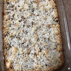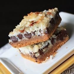 2In a 9 x 13 inch pan pour in melted margarine. Sprinkle the graham cracker crumbs evenly over the margarine. Next place the chopped nuts over the crumbs, and spread the chocolate and butterscotch chips over the nuts. Add the coconut over all, and pour the milk evenly over the top.