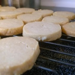 3On lightly sugared surface, roll out dough, one part at a time, about 1/2 inch thick. Using a 1 1/2 inch round cookie cutter, cut out cookies. Place 1 inch apart, on ungreased cookie sheet. With end of wooden spoon, or cookie press, make an indentation in center of each cookie.