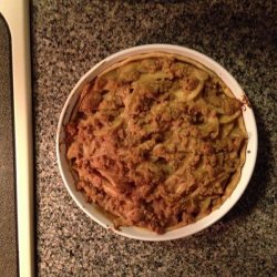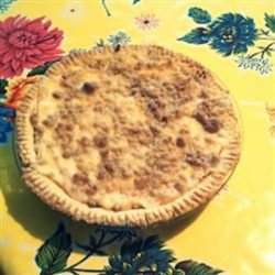 3In a small bowl, mix together 1/4 cup flour and brown sugar. Mix in the butter with your fingers until the mixture is crumbly. Sprinkle evenly over the top of the pie.