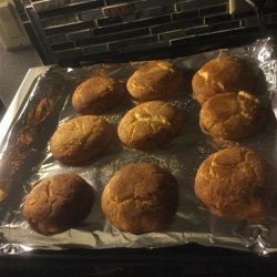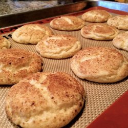 3Roll the dough into balls the size of small walnuts. Roll in a mixture of 2 tablespoons sugar and 2 teaspoons cinnamon. Place 2 inches apart on an ungreased cookie sheet.