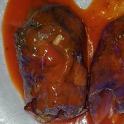 5On 1 cabbage leaf, place about 2 tablespoons skillet mixture and 1 tomato. Roll tightly, and seal with a toothpick. Repeat with remaining filling. Arrange in a casserole dish. Pour the soup and water over cabbage rolls. Season with salt and pepper.
