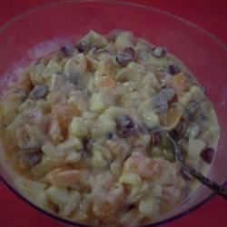 2In a large salad bowl, combine fruits. Gently mix in orange dressing. Cover, and refrigerate for 2 hours.