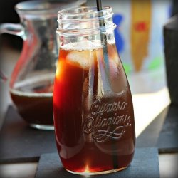 1Sprinkle a pinch of baking soda into a 64-ounce, heat-proof, glass pitcher. Pour in boiling water, and add tea bags. Cover, and allow to steep for 15 minutes.