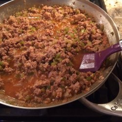 1Combine the ground beef and onion in a cold skillet, place the skillet onto a stove burner, and turn the heat to medium; cook and stir until the beef is crumbly and browned. Stir the garlic and bell pepper into the beef mixture; continue cooking and stirring until the vegetables are tender, 2 to 3 more minutes. Add 1 cup of water. Mix in ketchup, brown sugar, Dijon mustard, Worcestershire, salt, and pepper. Pour in 1 more cup of water. Bring to a simmer. Reduce heat to low and cook until the mixture becomes very thick, 30 to 45 minutes. Adjust salt and pepper as needed. Season with cayenne.