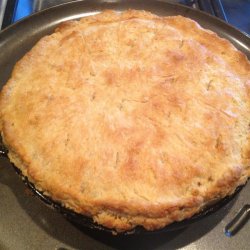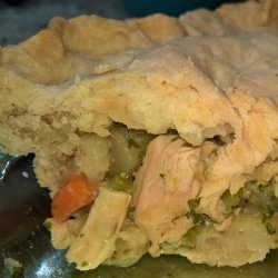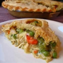 3In a medium saucepan, melt the remaining 2 tablespoons butter. Stir in the turkey and flour. Add the milk, and heat through. Stir the turkey mixture into the vegetable mixture, and cook until thickened. Pour mixture into the unbaked pie shell. Roll out the top crust, and place on top of filling. Flute edges, and make 4 slits in the top crust to let out steam.