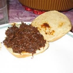 "This recipe comes from my friend who is a guide in Alaska - it's excellent for sandwiches, on rolls with sharp Cheddar cheese. Yum yum! Slow cooked in a slow cooker so even the toughest of roasts or stew meats will work; eventually the meat just falls apart! Also good served over hot cooked rice. Delicious!"
