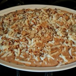 "This bean dip is sooooo good. It is easy to make and is always a hit. I make it for my Super Bowl party each year and it is always gone before half time!! Two cheeses and refried beans are baked with mild spices to create a creamy dip. Serve with tortilla chips."