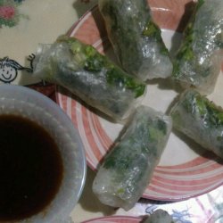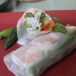 "These spring rolls are a refreshing change from the usual fried variety, and have become a family favorite. They are great as a cool summertime appetizer, and are delicious dipped in one or both of the sauces."