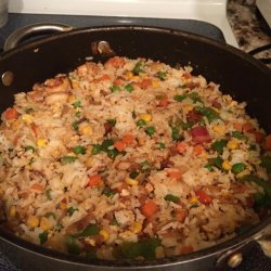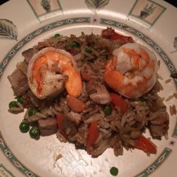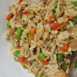 "Loaded with shrimp, ham, chicken, and veggies, just like in your favorite Chinese restaurant. This 'House' Fried Rice is delicious and an excellent use of leftovers! Feel free to substitute ingredients, depending on what you have on hand."