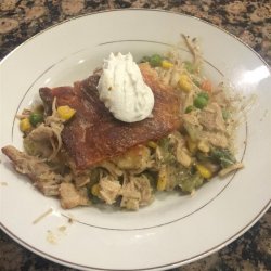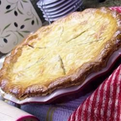 2Mix together the turkey or chicken, mixed vegetables, onion, soup and milk. Pour into pie crust, cover with top crust and crimp edges.