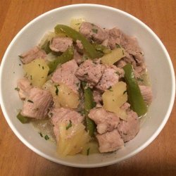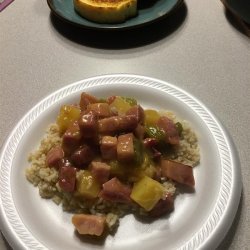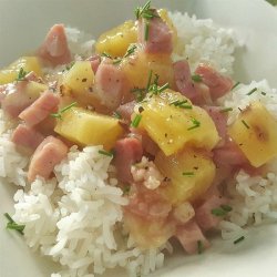 "A great take on a Hawaiian-style dinner. This one's great for that leftover ham. Cubed ham sauteed with onions and pineapple in a sweet sauce. Kids love it and it's great served over rice or noodles."
