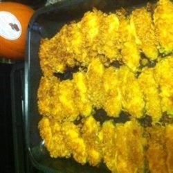 Whisk together eggs and milk in a small bowl. Place crushed corn flake cereal in a separate small bowl.