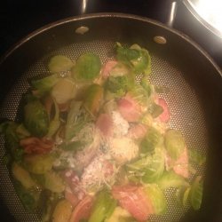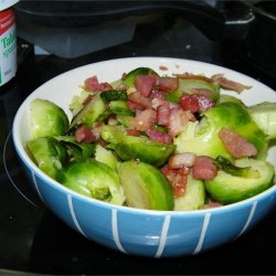 1Bring the water to a boil in a large saucepan. Add Brussels sprouts, and cook for 5 to 7 minutes. They should still be slightly firm. Drain, and rinse with cold water. Slice the sprouts in half, and set aside.