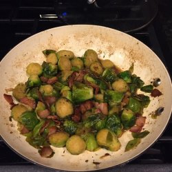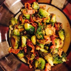 4Remove skillet from heat and stir bacon, butter, vinegar, salt, and pepper into Brussels sprouts mixture until butter is melted.