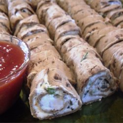 Slice chilled rollups into 1 inch pieces. Serve with salsa for dipping.
