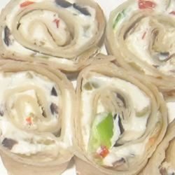 Spread cream cheese mixture in a thin layer onto each tortilla. Roll up tortillas. Chill about 1 hour, or until the filling is firm.