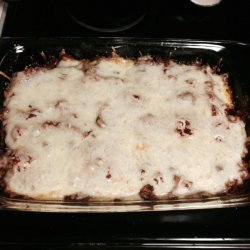 Spoon browned meat into a 9x13 inch glass baking dish. Spoon a layer of refried beans over meat, then salsa. Top with shredded cheese.