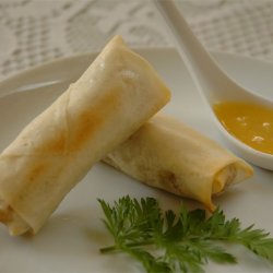5Place approximately 1 tablespoon of the pork mixture in the center of spring roll wrappers. Roll wrappers around the mixture, folding edges inward to close. Moisten fingers in the cornstarch and water mixture, and brush wrapper seams to seal.