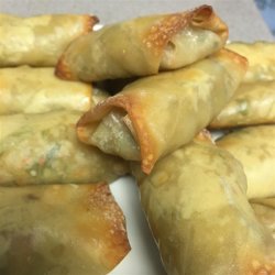 6Arrange spring rolls in a single layer on a medium baking sheet. Brush with vegetable oil. Bake in the preheated oven 20 minutes, until hot and lightly browned. For crispier spring rolls, turn after 10 minutes,