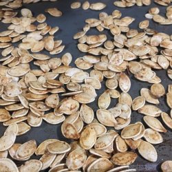 "Pumpkin seeds that are crunchy and full of fall flavor. Very popular."