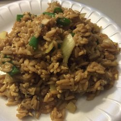 2Heat oil in a medium skillet or wok over medium heat. Saute onions and green beans for 2 to 3 minutes. Pour in egg and fry for 2 minutes, scrambling egg while it cooks.