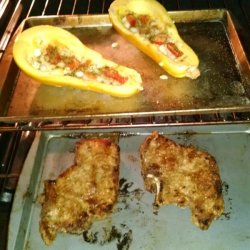 3Bake at 375 degrees F (190 degrees C) for 20 minutes, turn chops over, and cook for 20 more minutes, or to desired doneness.