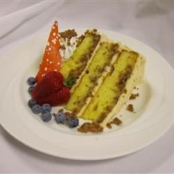 1Preheat oven to 350 degrees F (175 degrees C). Grease and flour two 9 inch pans. Combine the graham cracker crumbs, brown sugar, walnuts and butter. Divide mixture evenly between the prepared pans. Set aside.