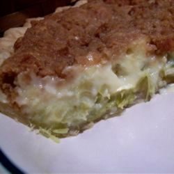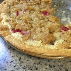 2Press the pie crust into a 9 inch pie pan. Spread rhubarb in an even layer in the bottom of the crust. In a medium bowl, whisk together the egg, white sugar, sour cream and 1/3 cup of flour until smooth. Pour over the rhubarb.