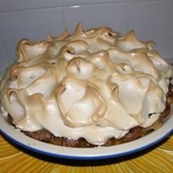 3In a large glass or metal bowl, beat together egg whites and cream of tartar until foamy. Add brown sugar 1 tablespoon at a time, continuing to beat until whites are stiff and glossy. Beat in vanilla extract. Spread evenly over raisin filling, sealing meringue to crust edges.